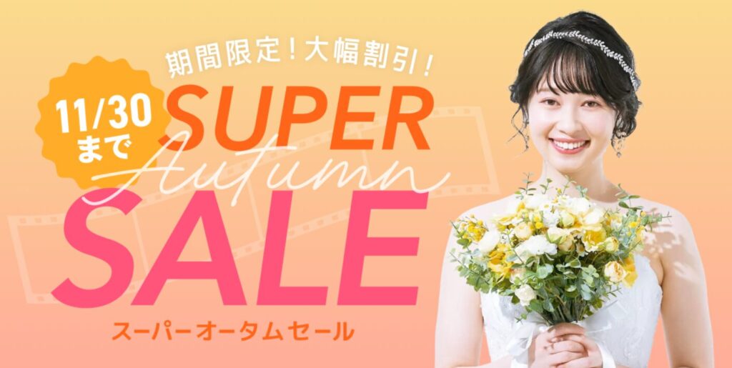 ナナイロウェディングのスーパーオータムセールは、期間限定の大幅割引キャンペーンです!